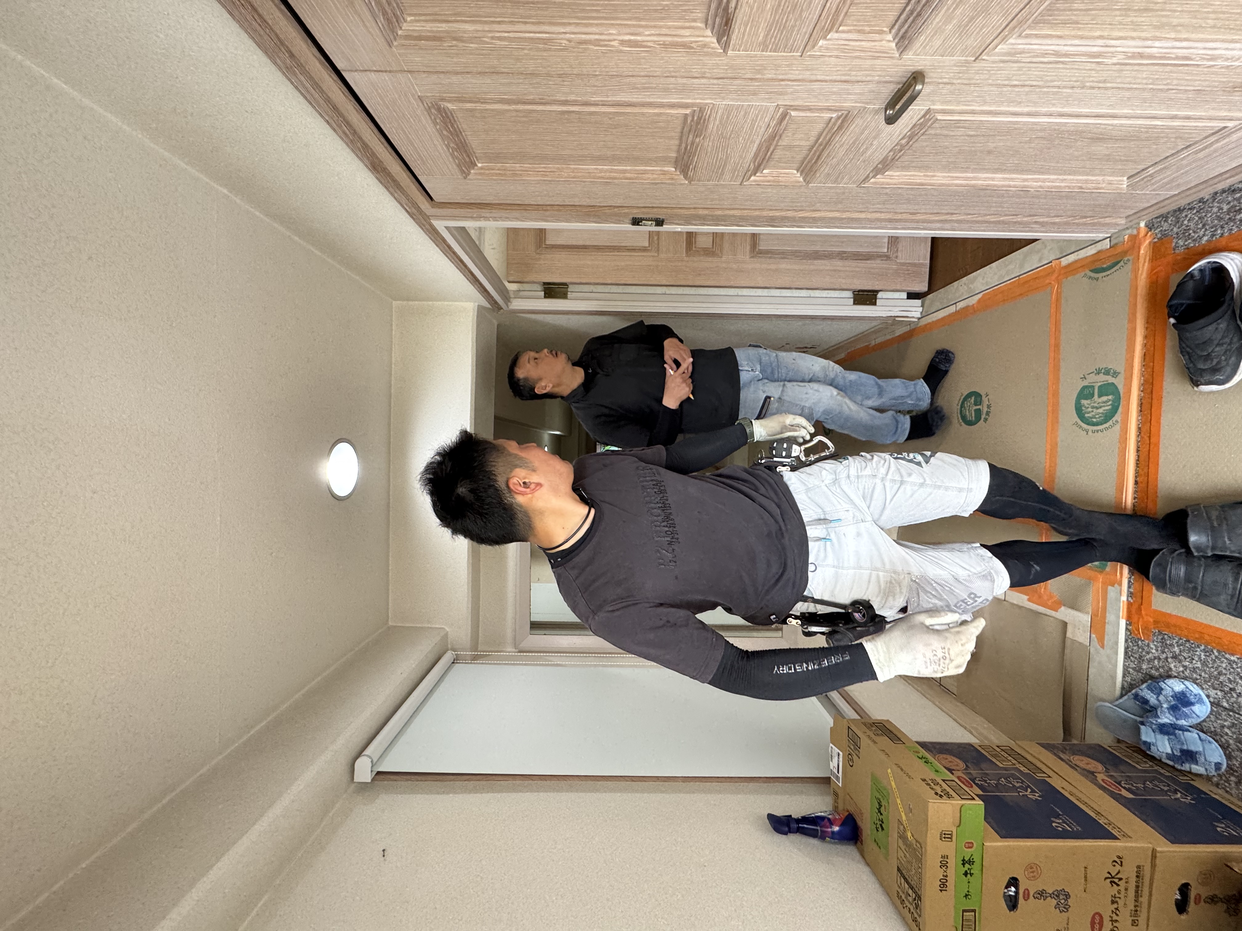 こちらはマンションの現場で、以前からのお客様なんですが、今回は洋室2つを1つに、そして玄関や廊下のリフォームをご依頼いただいています。