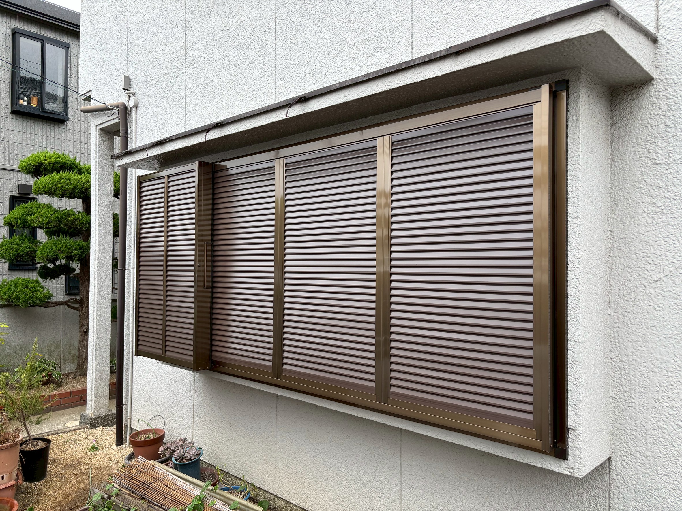 採用いただいたのは、LIXIL製雨戸一筋ルーバータイプ、鏡板付です。