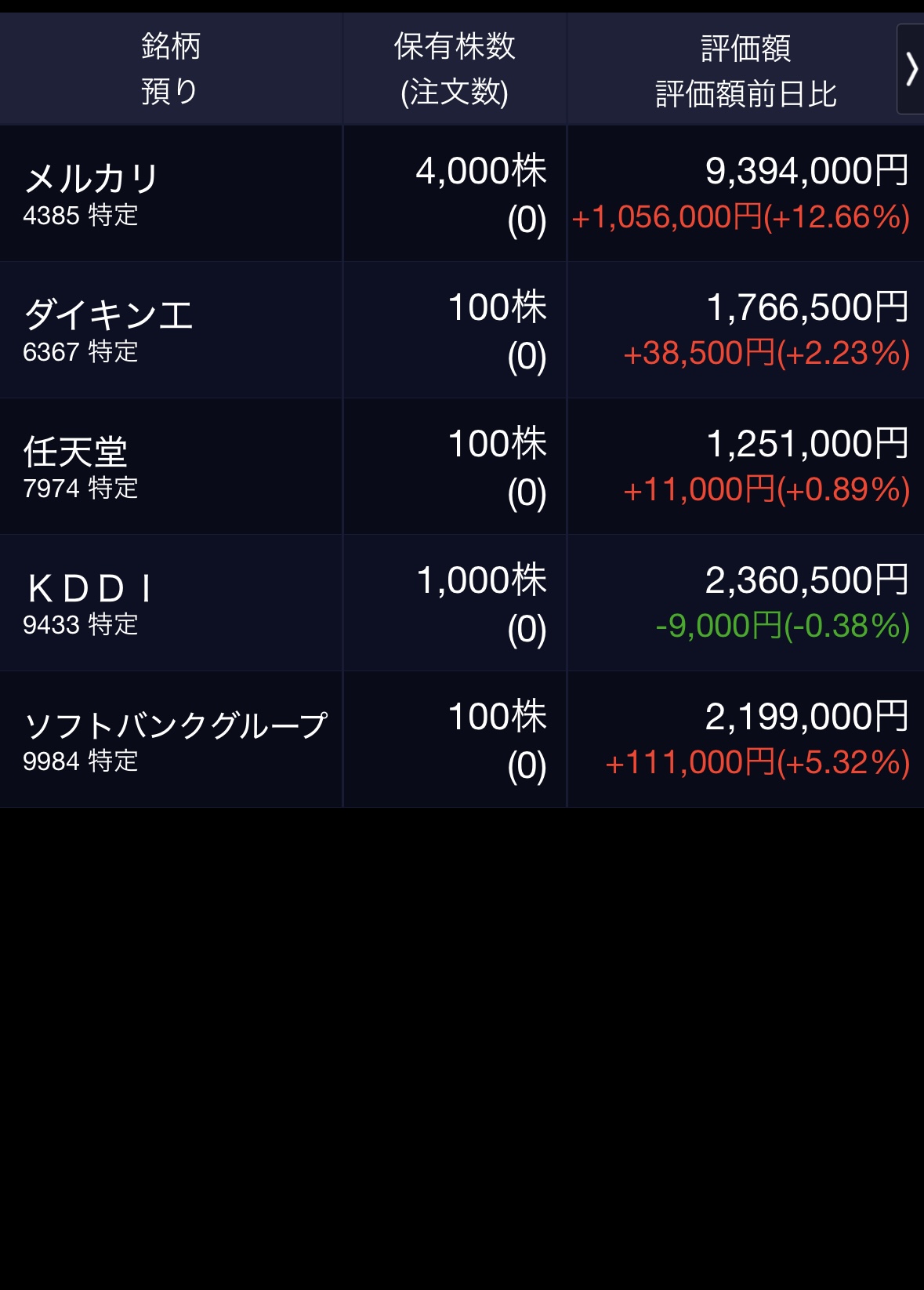 こちらは私の保有するメルカリ株。