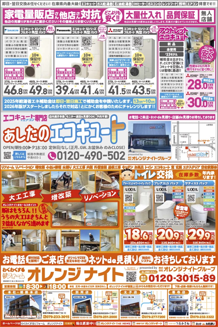 今週はこのリビングですが、来週の新聞折込みでは、かなりインパクトのあるあしたのエコキュートチラシになっております。