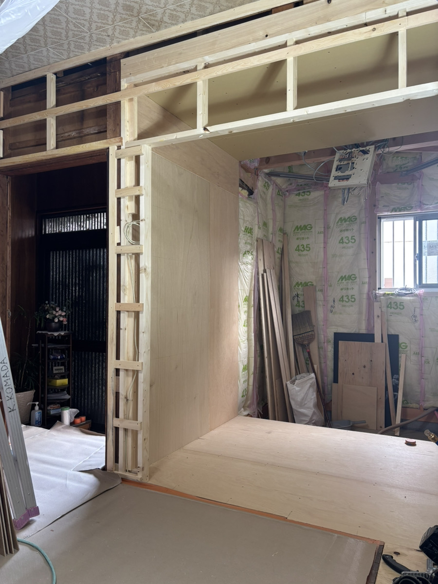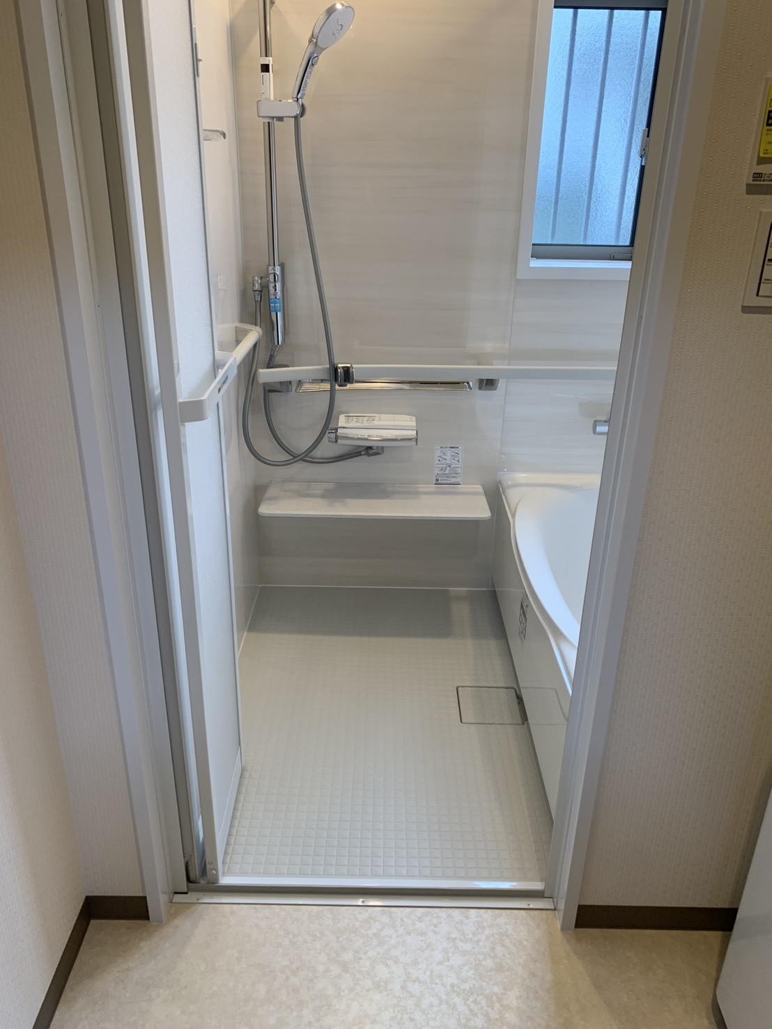 元々脱衣場が無く浴室も横幅が1mない狭小スペースで浴室を広げるなら脱衣場も作りましょうとご提案させていただきました。