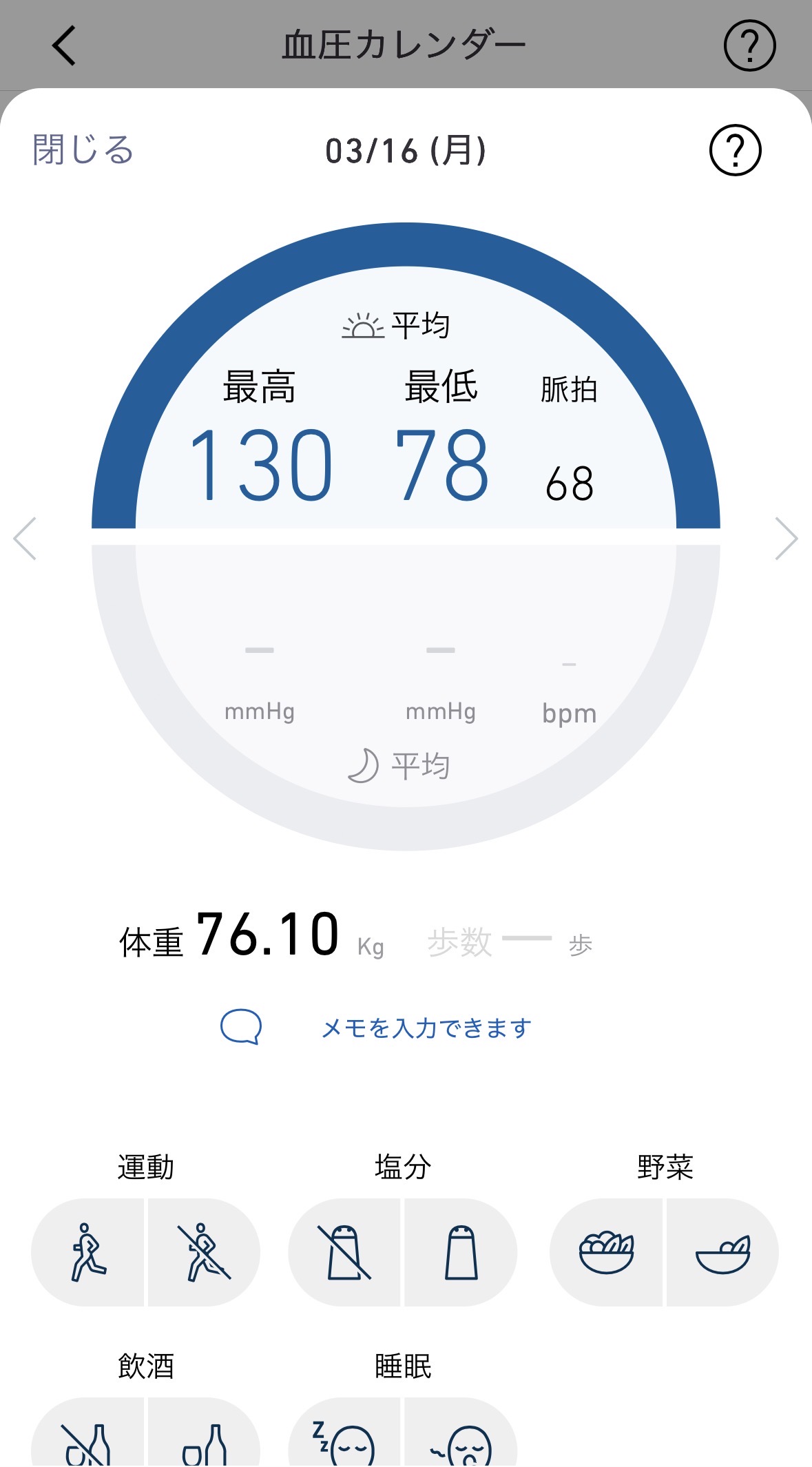 昨日の血圧計、楽しいので昨日夜、今朝も測ってきました。