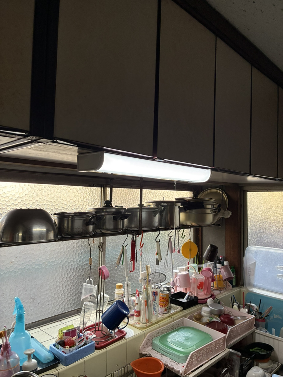 キッチンの蛍光灯の接触が悪くてつく時とつかない時があるらしくLEDに交換させていただきました。