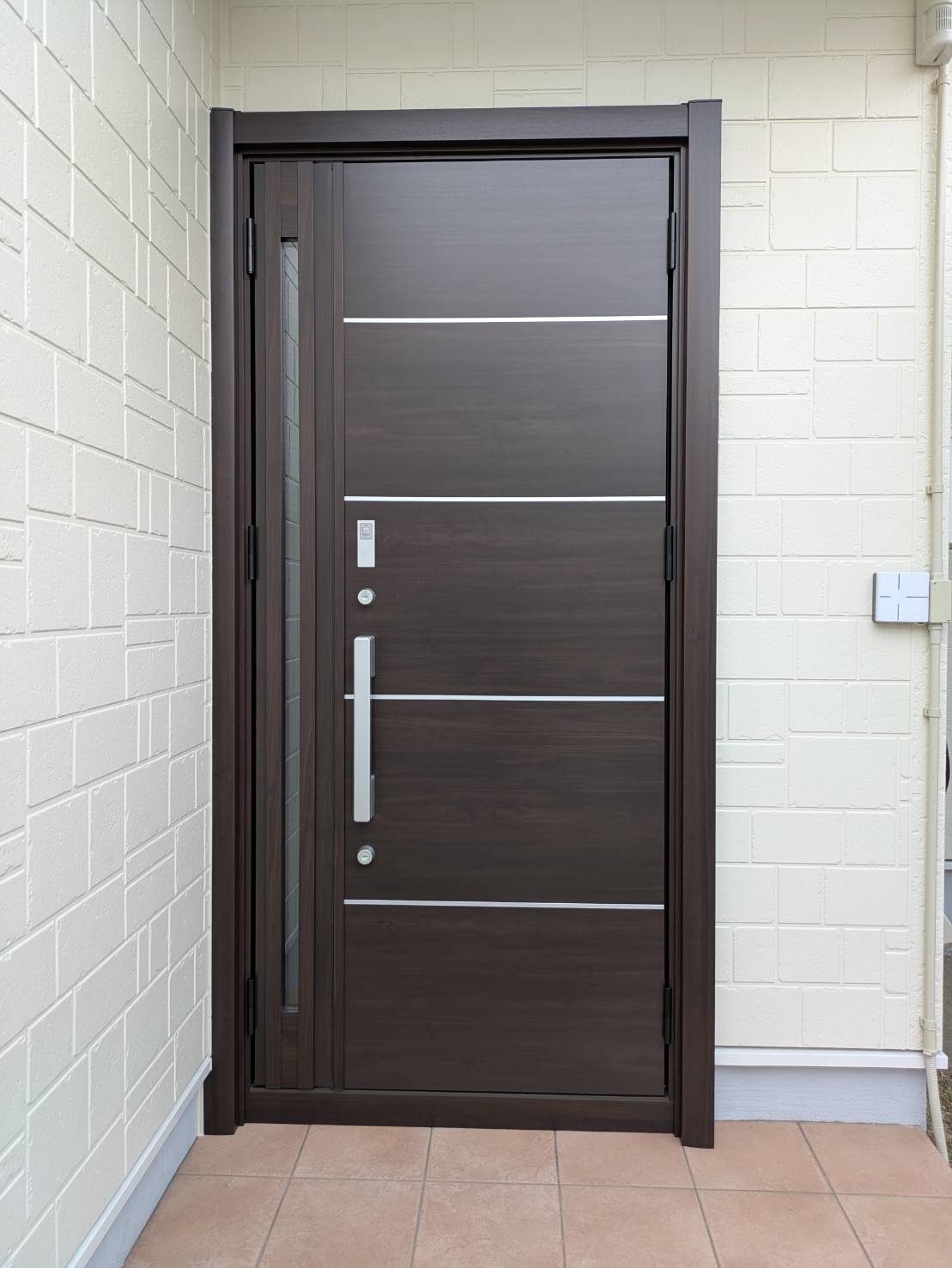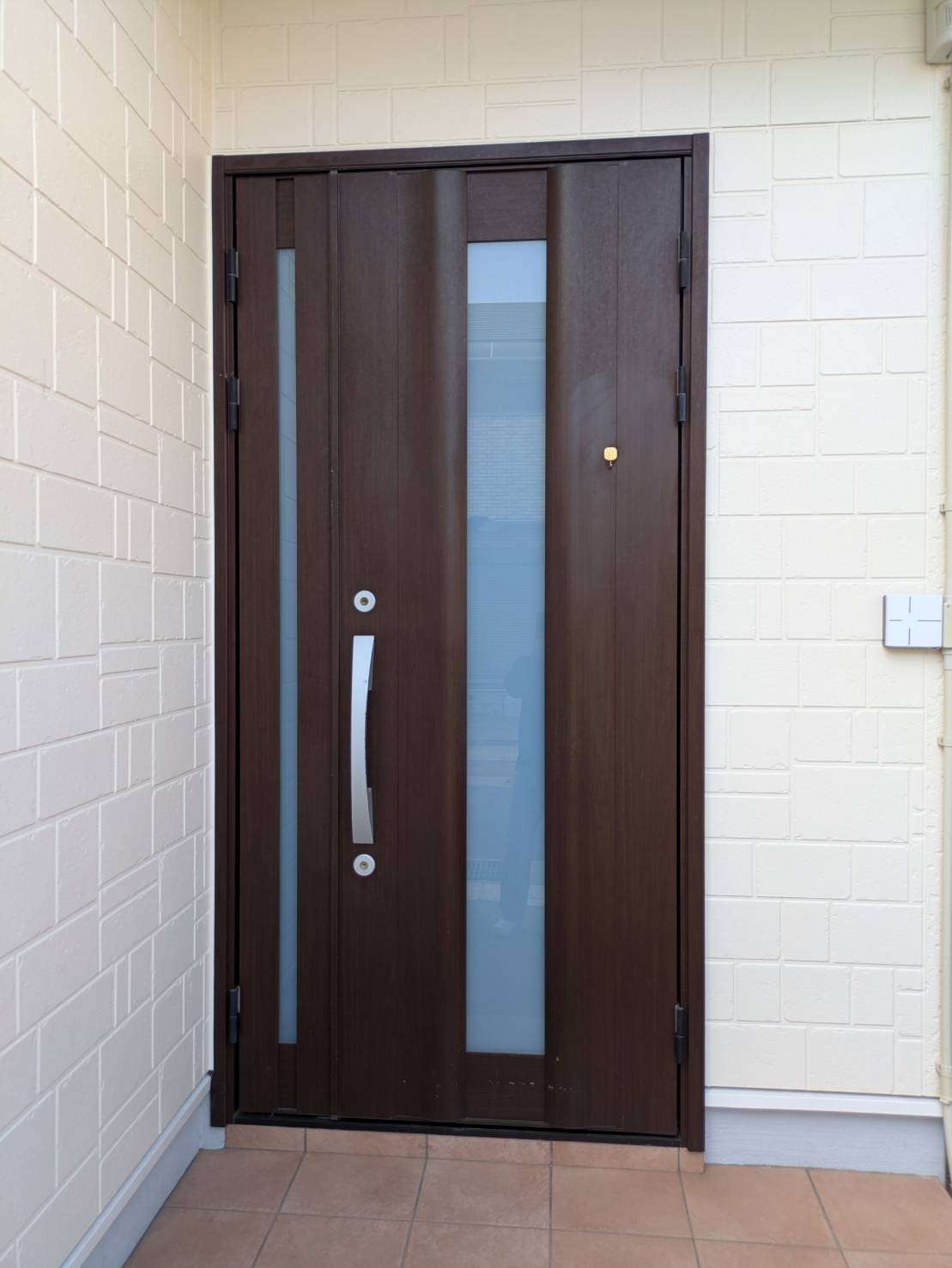 既存ドアに問題があるというわけではないのですが、鍵をタッチキーにしたいのと傷が気になっていたので取替えをご希望でした。