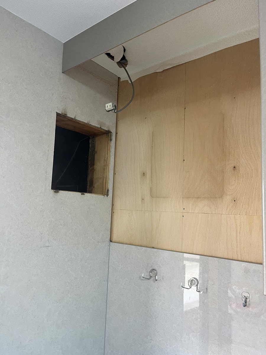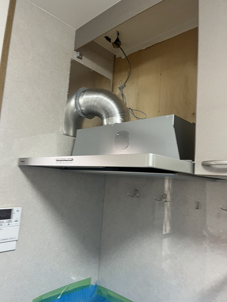 まず清掃して、立上りを一部撤去、絶縁シート敷き込み、塩ビ鋼板取付け、IHディスク取付け、改修ドレーンの取付けを行います。