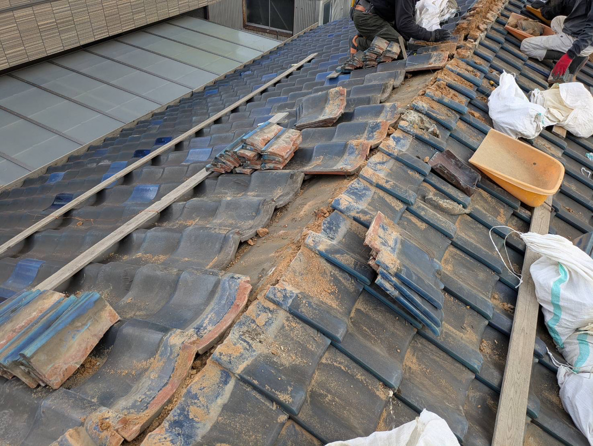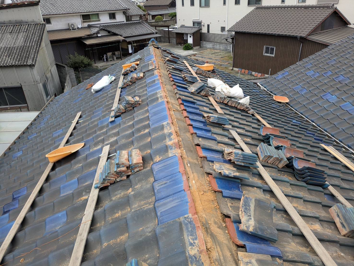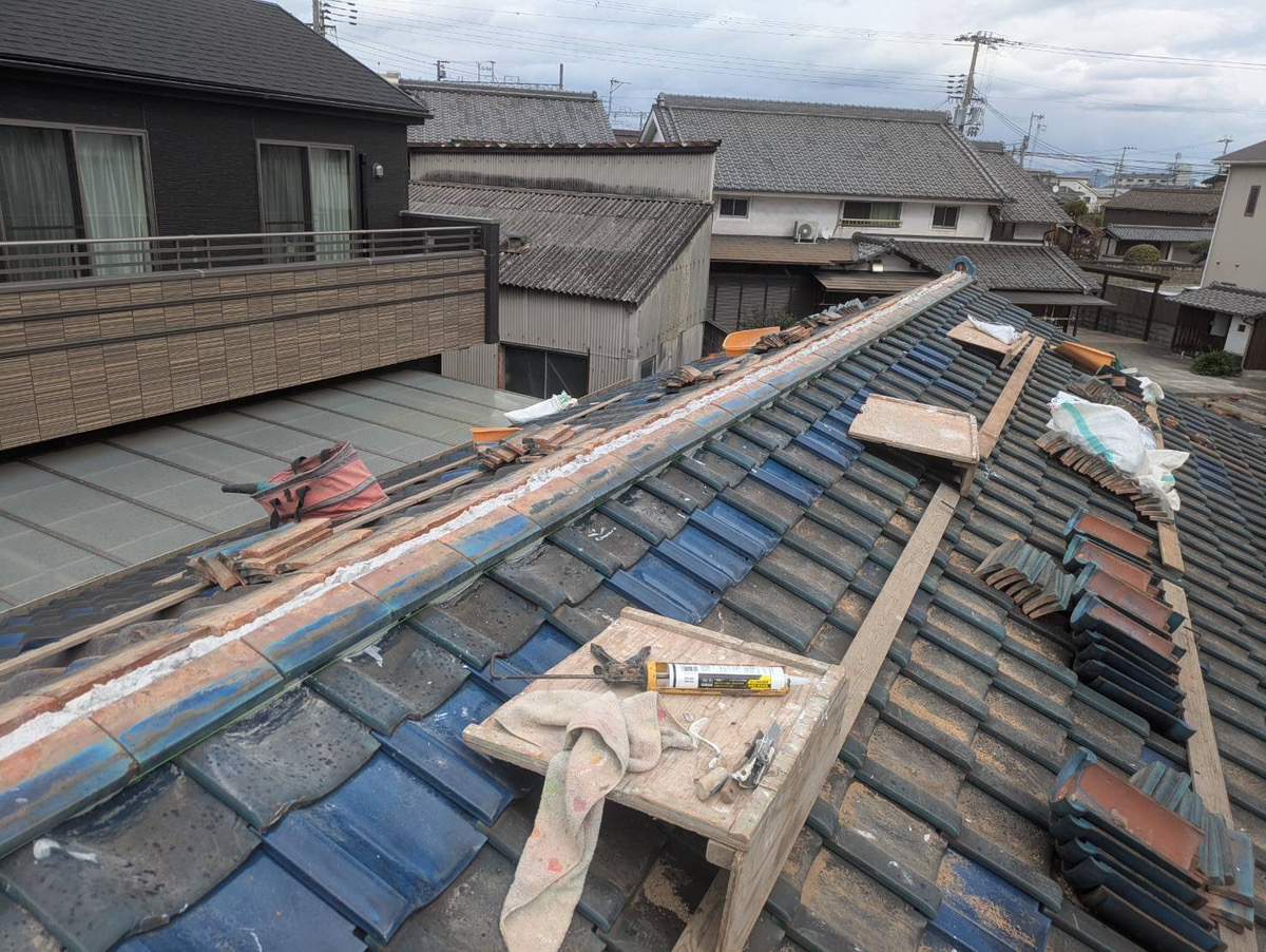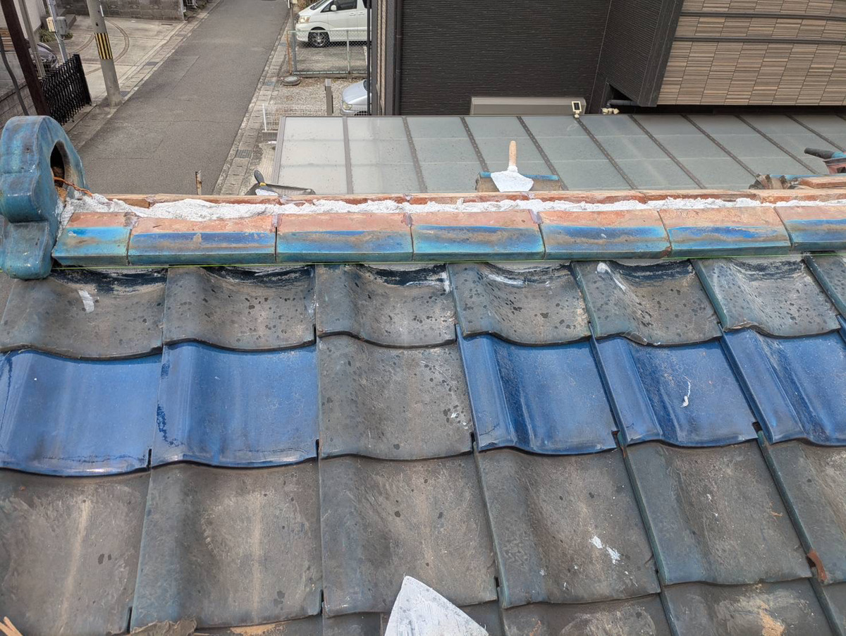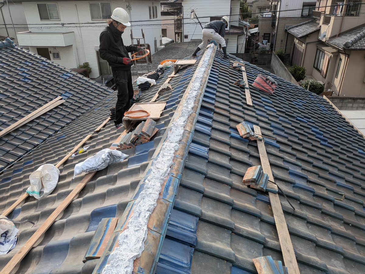 今回は棟をばらし積直し、漆喰をやりかえます。