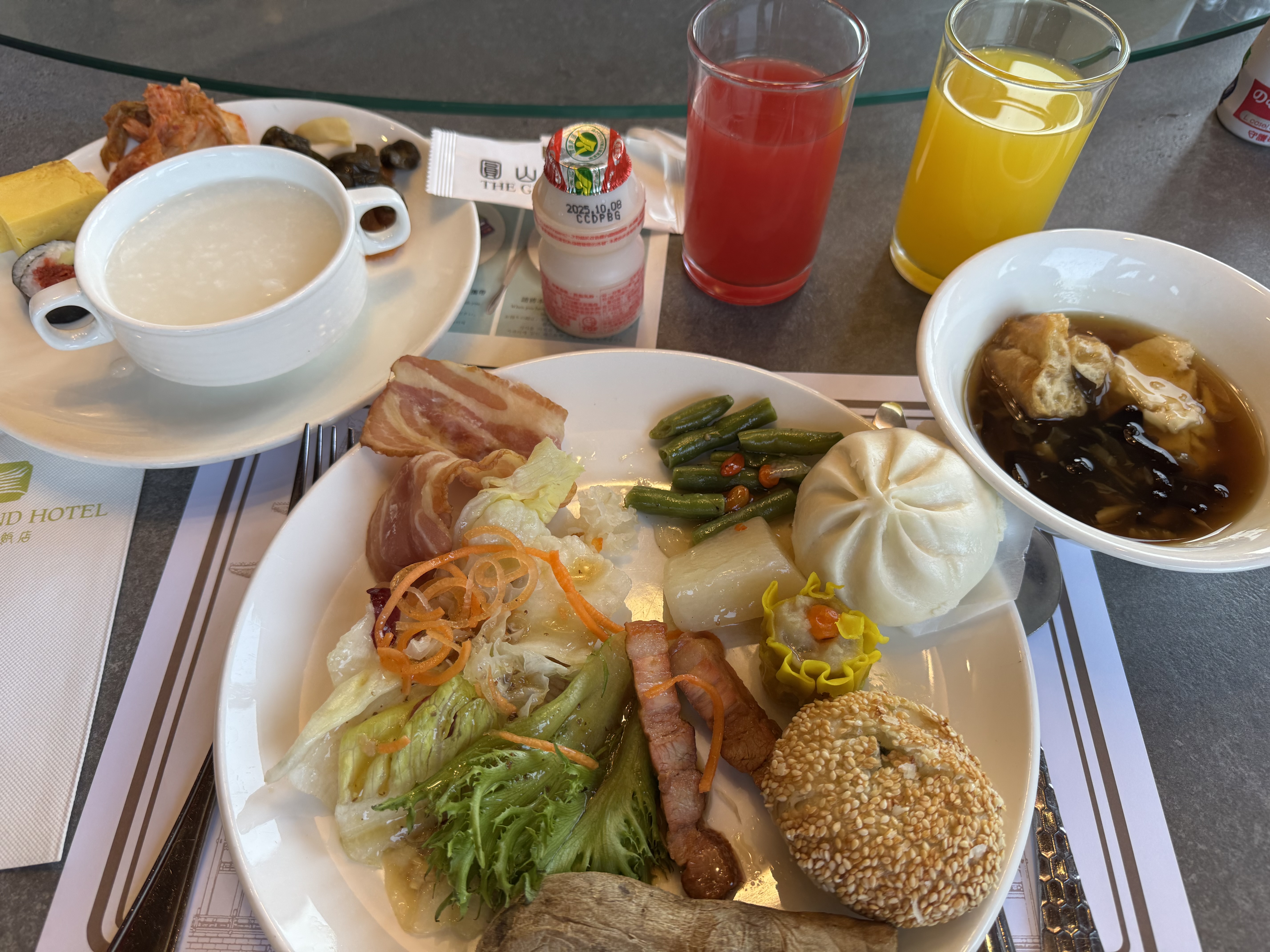 まずは朝食。圓山大飯店の朝ごはんはビュッフェ。台湾らしいメニューで良い感じです。