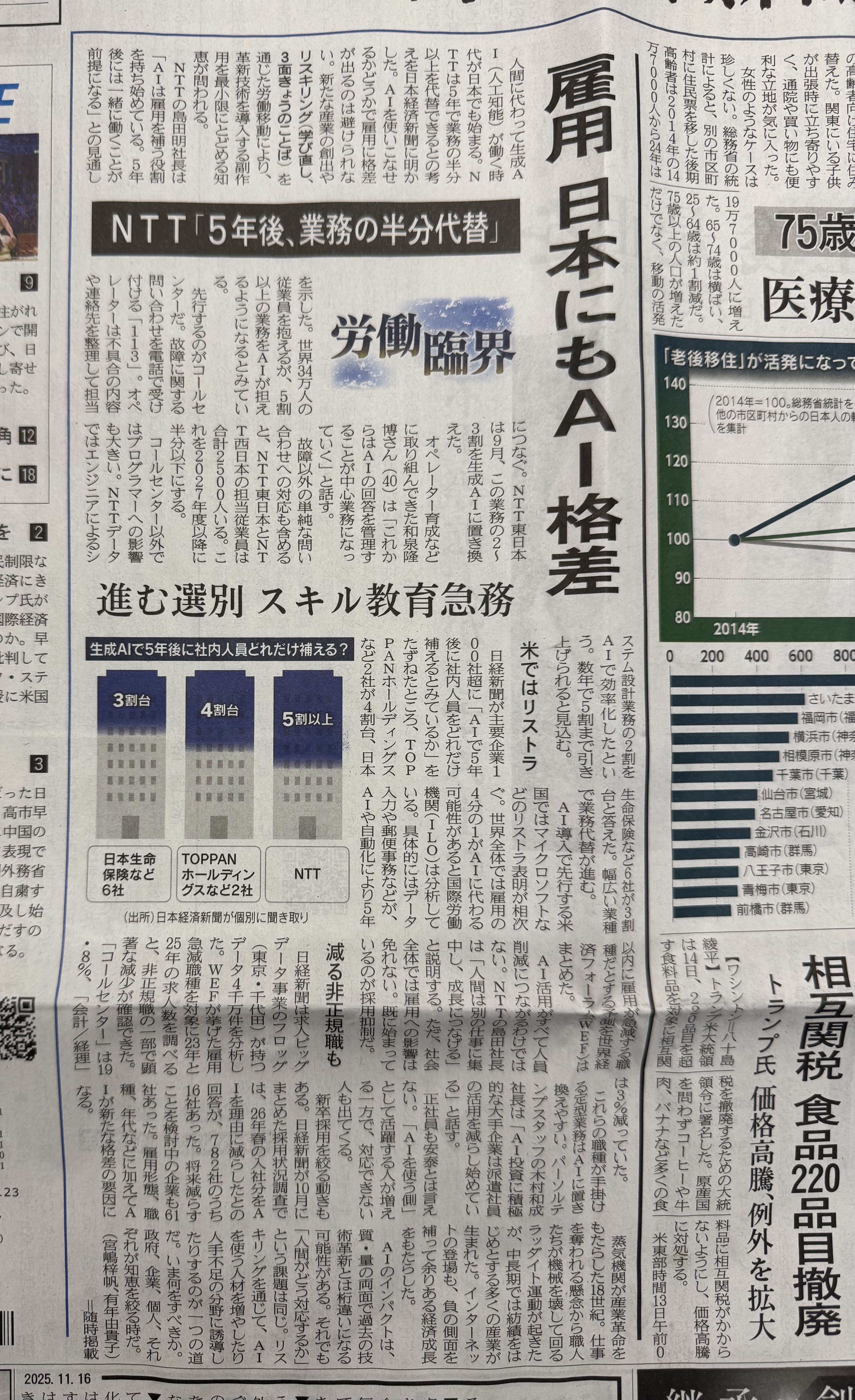 NTTが、5年後には業務の5割以上をAIで代替できるという考えを表明したとあります。